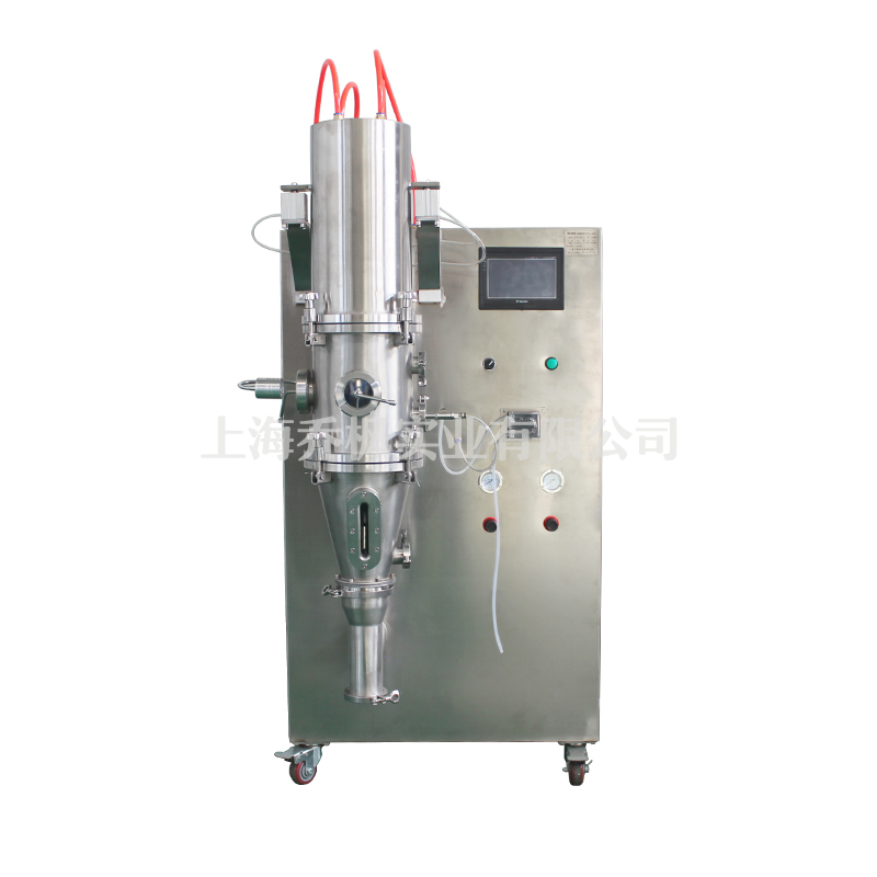 1) the multi-function spray granulation machine is easy to operate: the control system adopts PLC automatic control, and the color touch-screen operation. The experimental parameters such as inlet air temperature, air temperature, material temperature, fan speed and spray pressure during the experiment can be changed immediately according to the experimental needs and convenient for users. The touchscreen has USB interface, and the data can be exported to U disk or online printing.