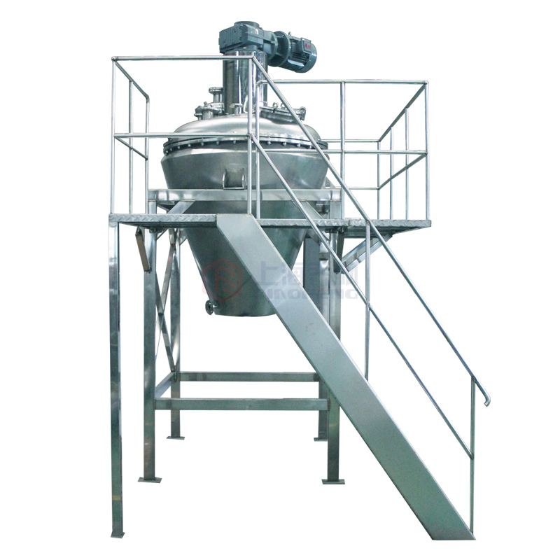 DMIX真空攪拌混合干燥機工作過程為批次操作,濕物料進入料倉后,利用夾套、攪拌加熱進行干燥。通過選擇合適的單錐真空干燥機(工作容積)可以達到需求的處理量范圍,采用上驅動式結構的攪拌器與攪拌螺桿可分段拆裝,由于安裝空間充裕,適宜于GMP車間使用和進行檢修維護,同時單錐螺旋真空干燥機具有的高效干燥混合能力是雙錐真空干燥機的3-4倍, 物料裝填率在10%-99%可正常工作,懸臂螺桿攪拌可以達到較高的混合精度,在大批物料中添加很少量物料這樣的苛刻條件下也可以在干燥機內混合均勻,由與其與眾不同的溫和攪拌的特性,即使對干燥處理敏感的產品,也不會遭損壞,所需的驅動功率卻相對很低。本干燥機的高真空設計對干燥溫度敏感的產品來說其優勢十分明顯,并具有良好的熱傳導能力、和快速干燥,同時、又兼具低耗能的特點。與干燥機直接相連的過濾器能夠將塵粒保留在加工區域內,本機采用充氣密封半球閥,卸料干凈、便捷,出色的真空、耐壓密封性能, 無死角、易清潔設計,性能穩定、使用壽命長,從而保證您能夠無損失地繼續加工產品。這樣一種多用途干燥/混合設備是您解決生產需求的理想裝備。
