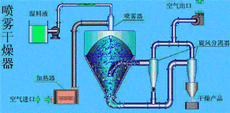 1)干燥速度快,料液經霧化后表面積大大增加,在熱風氣流中,瞬間就可蒸發95%-98%的水份,完成干燥的時間僅需要十幾秒到數十秒種,特別適用于熱敏性物料的干燥。